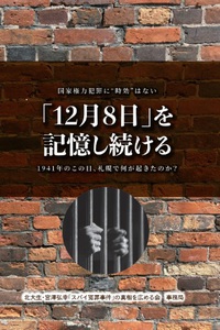 高市早苗首相は、24日の所信表明演説では触れなかったが、自民・維新の「連立政権合意書」では、「スパイ防止法」制定を明記している。この法律の危険性は、太平洋戦争開戦の1941年12月8日に起きた北大生・宮澤弘幸「スパイ冤罪事件」に示されている。市民団体「事件の真相を広める会」は、戦争体制化が進む現政権下でおなじ悲劇を繰り返してはならないと、同法の阻止をめざして『「12月8日」を記憶し続ける』を発刊した。(福島清)