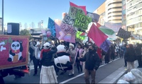 1月11日、埼玉県川口市で市民グループ「ごちゃまぜ川口」が主催するデモ行進「ごちゃまぜ川口 NO HATE MARCH」が行われた。差別や排外主義に反対し、人種や国籍の違いを越えた共生社会の実現を訴えるこのマーチには、主催者発表で約1,200人が参加した。行進はJR川口駅周辺から西川口駅までの約5キロ。参加者は「この街にヘイトはいらない」「一緒に生きよう」などと書かれたプラカードを掲げ、音楽を流しながら市街地を歩いた。その様子は、抗議の色合いを持ちながらも、終始明るい雰囲気に包まれていた。(岩中健介)(2026/01/26 12:37)